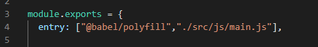 폴리필을 사용하려면 webpack.config.js파일의 entry에 폴리필을 추가해준다.